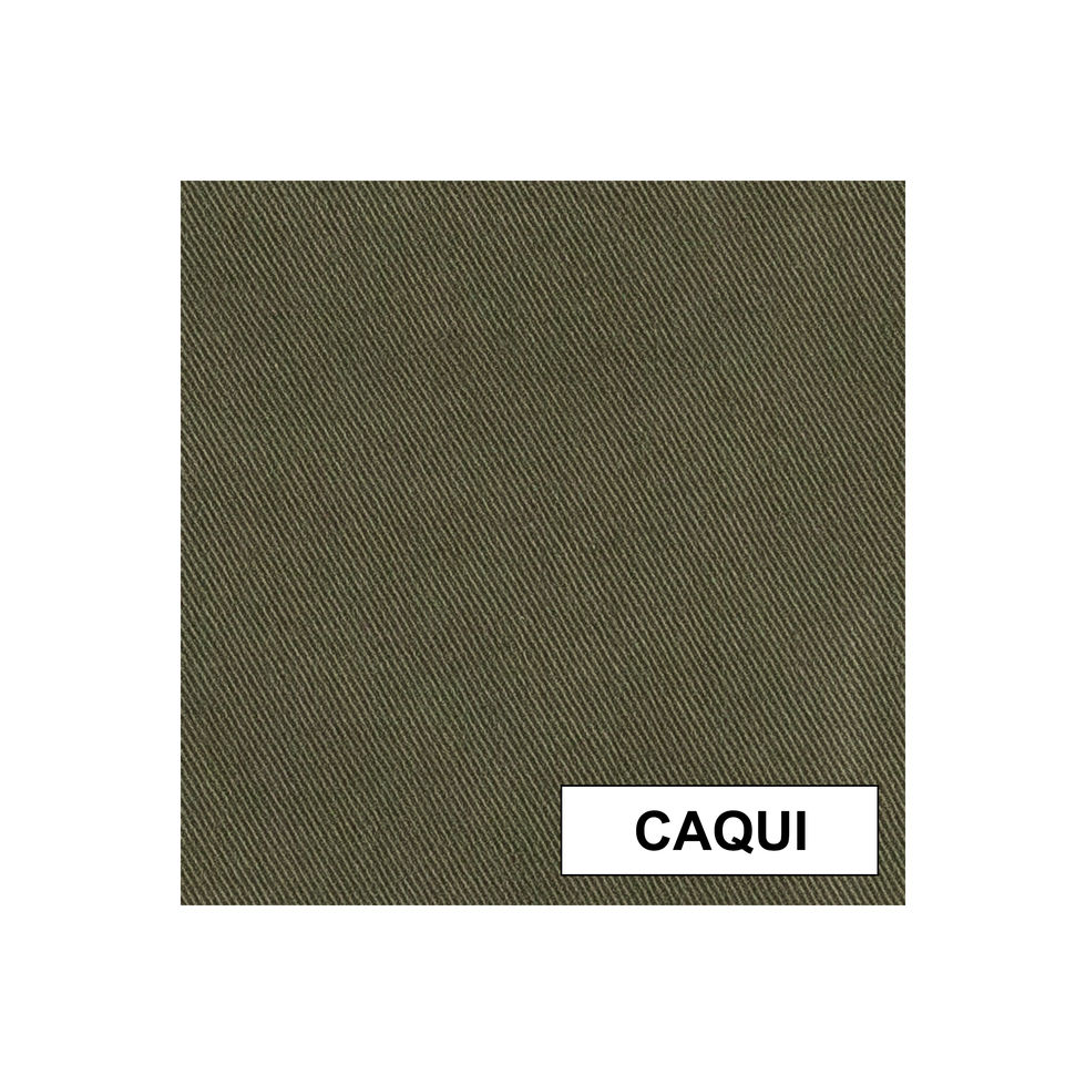 Calças de Sarja. Apertam com fecho e botão. Tem 5 bolsos, dois deles laterais. Sarja elástico com perna mais estreita.