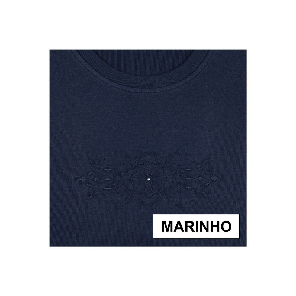 Camisola de manga comprida, com decote redondo. Com um pequeno bordado na zona do peito.